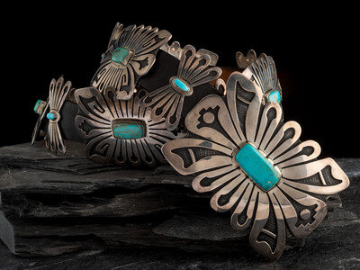Large Sterling Silver and Turquoise Concha Belt