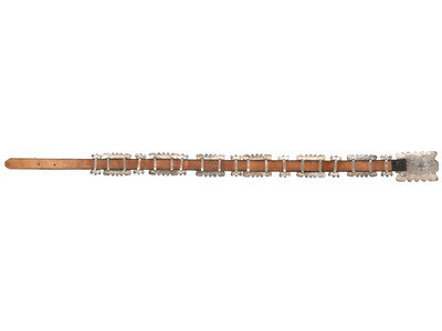 concha height 2-3/4 inches x length 3-3/4 inches; butterfly height 2-3/4 inches x width 1-3/8 inches; buckle height 3-1/2 inches x length 5 inches; belt length 46-1/2 inches; total combined weight 615.6 dwt.