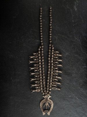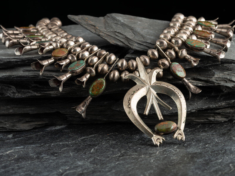 Navajo Sterling Silver and Royston Turquoise Squash Blossom Necklace