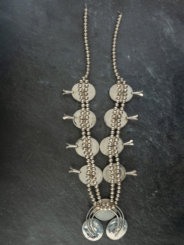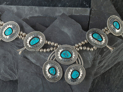 Large Navajo Shadowbox Silver and Turquoise Squash Blossom Necklace