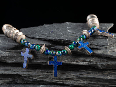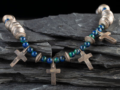 Mercury Dime, Lapis, and Azurite Cross Necklace
