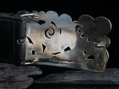 Abstract Silver Overlay Belt Buckle