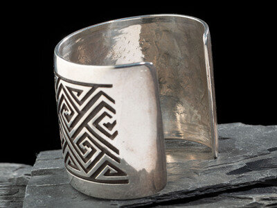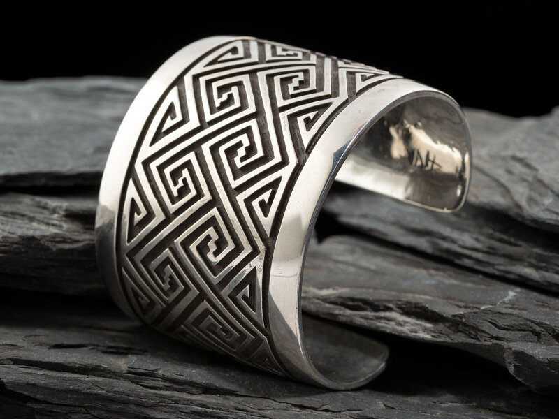 Sterling Silver Cuff Bracelet, with Repeating Greek Key Pattern