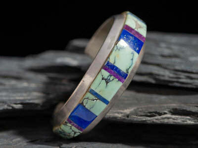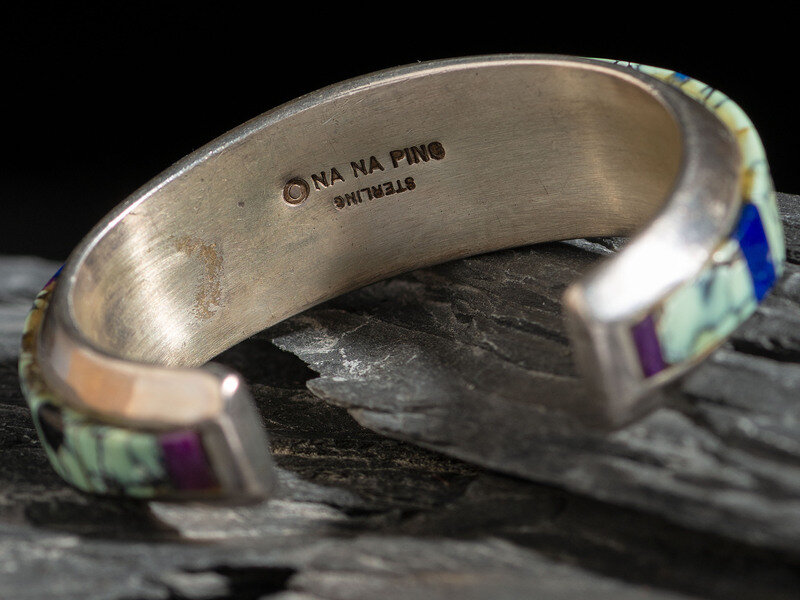 set with turquoise, lapis, and sugilite; signed NA NA ING and marked STERLING on interior