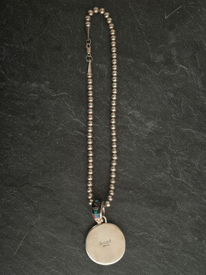 length17-3/4 inches, pendant length 2-3/4 inches x width 1-3/4 inches, weight 34.9 dwt.