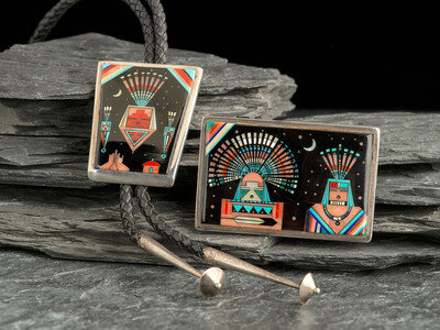 Silver and Mosaic Inlay Yeibichai Bolo and Belt Buckle Set