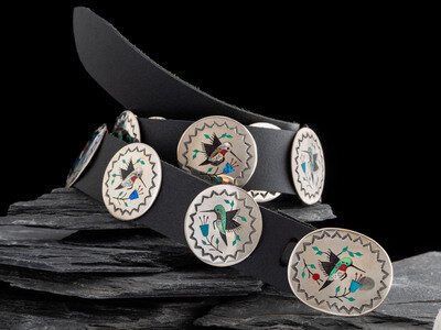 Sterling Silver and Mosaic Inlay Hummingbird Concha Belt