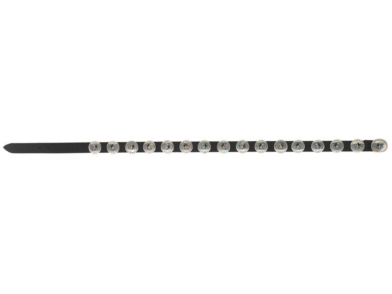fifteen round conchas and oval buckle, each inlaid with a hummingbird scene; signed RAYMOND BOYD STERLING