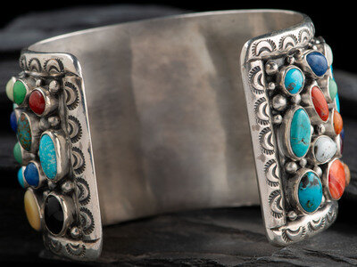 Navajo Sterling Silver Cluster Cuff Bracelet