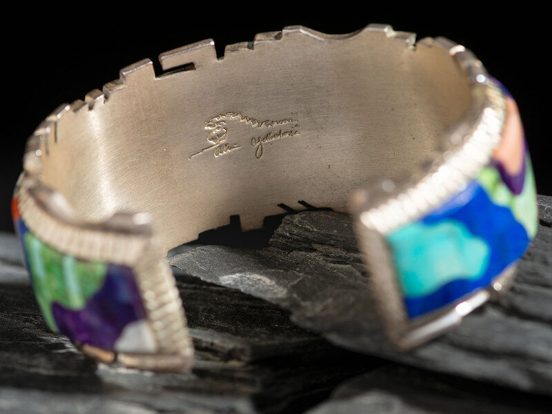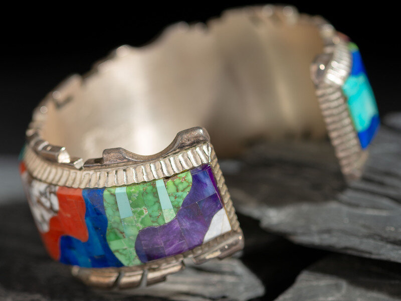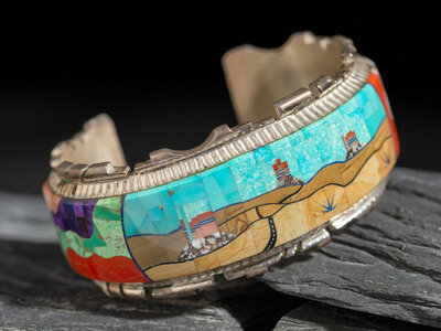 Sterling Silver Cuff Bracelet, with Mosaic Inlay Monument Valley Scene