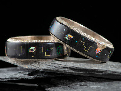 Pair of Matchinf Sterling Silver Bangle Bracelets, with Cosmic Inlay