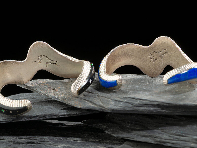 lot of 2, both signed ALVIN YELLOWHORSE and marked with artist's horse head hallmark; includes: