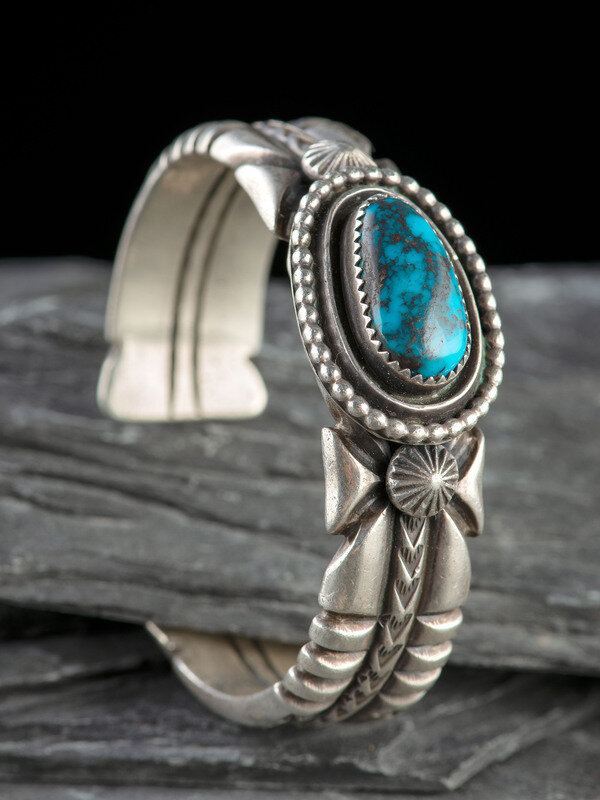 Heavy Sterling Silver and Bisbee Turquoise Cuff Bracelet