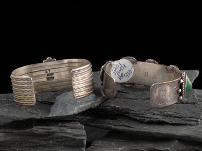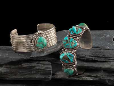 Pair of Navajo Silver and Turquoise Cuff Bracelets