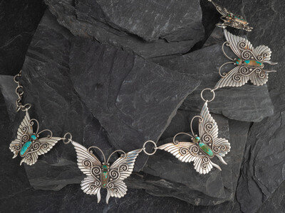 Navajo Sterling Silver and Turquoise Butterfly Necklace