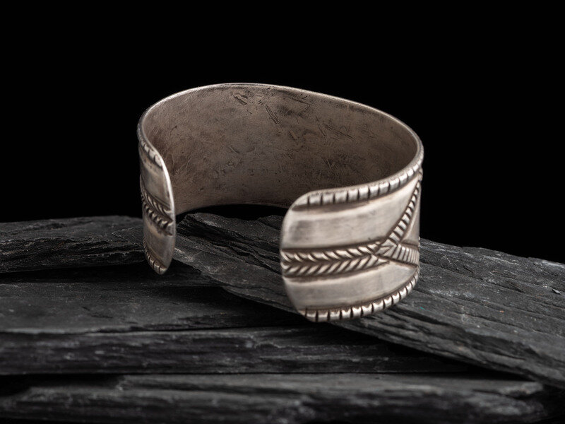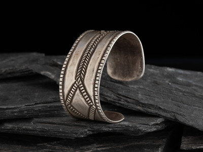 cuff width 1-1/4 inches, interior circumference 5-3/4 inches + gap length 1 inch, weight 47.7 dwt.