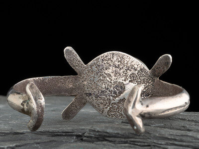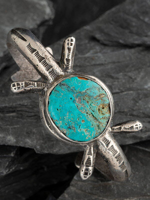 Navajo Sandcast Ingot and Turquoise Cuff Bracelet