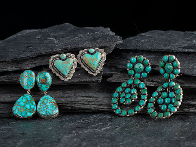 Group of Sterling Silver and High-Grade Turquoise Earrings