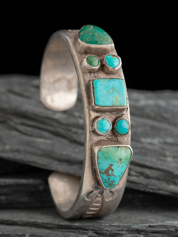 Navajo Ingot and Turquoise Cuff Bracelet