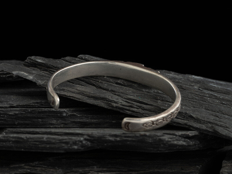 cuff width 3/8 inch, interior circumference 5-3/8 inches + gap length 1-1/4 inches, weight 203 dwt.