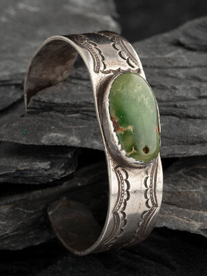 Navajo Ingot and Drilled Cerillos Turquoise Cuff Bracelet
