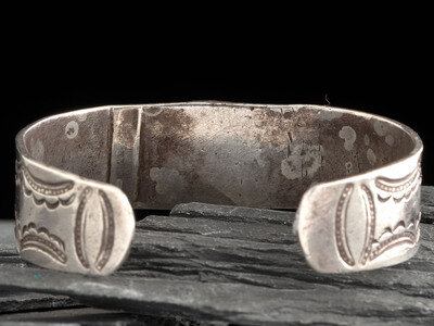 cuff width 5/8 inch, interior circumference 5-3/4 inches + gap length 15/16 inch, weight 25.3 dwt.