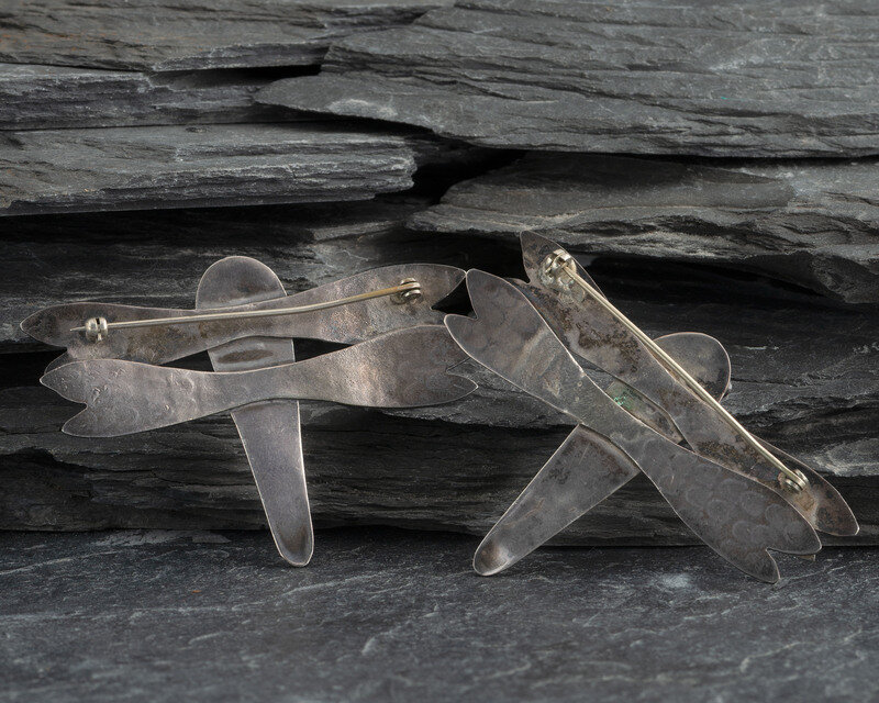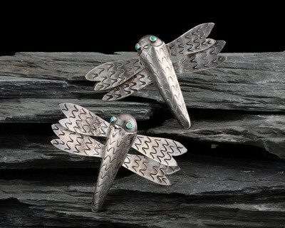Pair of Navajo Silver and Turquoise Dragonfly Brooches / Pins