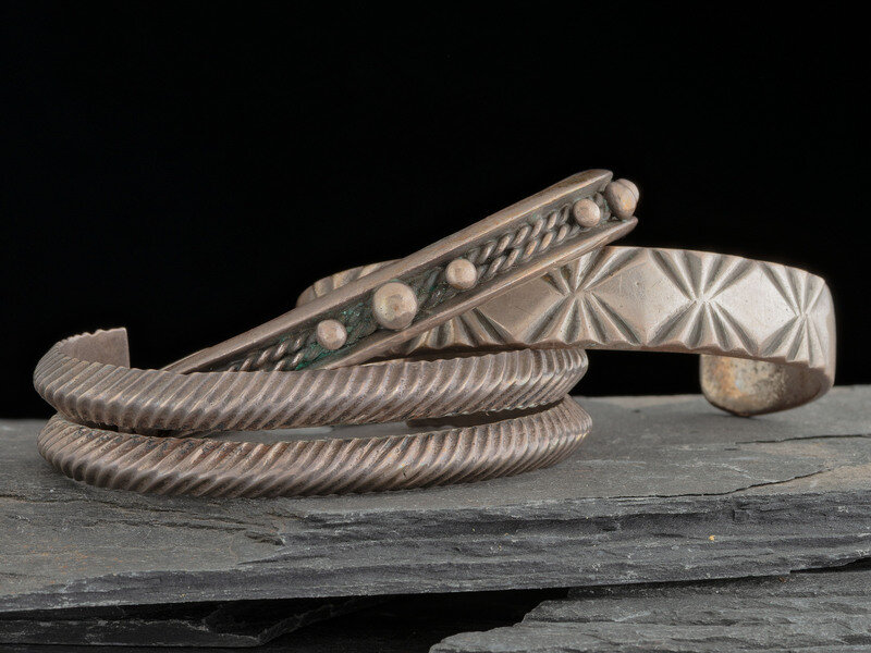 cuff width 1/2 inch, interior circumference 5-1/2 inches + gap length 1-1/2 inches, weight 26.9 dwt.