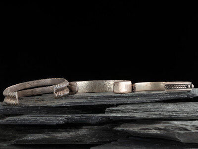 cuff width 3/8 inch, interior circumference 5-3/8 inches + gap length 1-1/2 inches, weight 27.7 dwt.