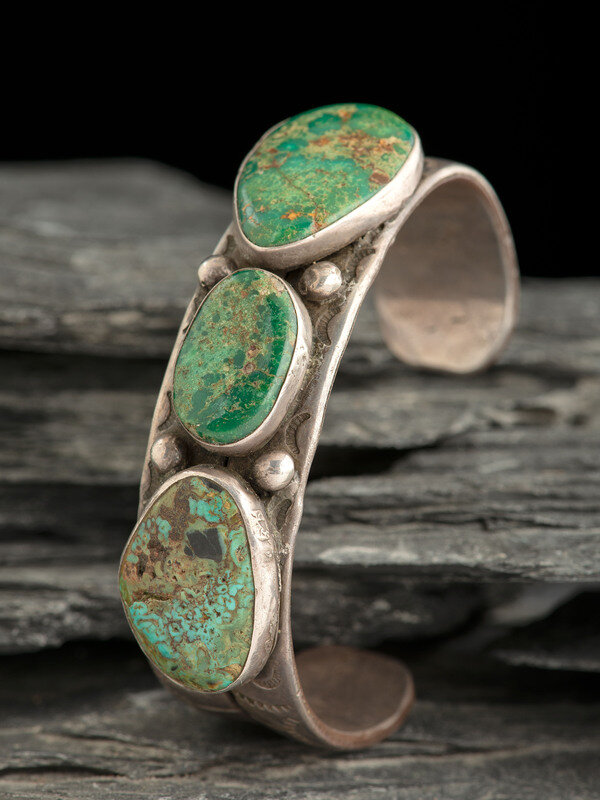 Navajo Ingot and Turquoise Cuff Bracelet