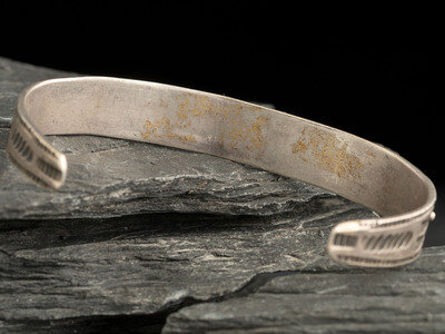 cuff width 7/16 inch, interior circumference 5-3/4 inches + gap length 1-3/4 inches, weight 18.0 dwt.
