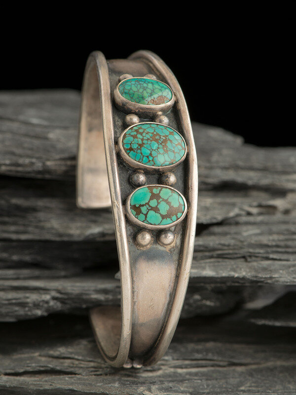 Navajo Silver and Persian Turquoise Cuff Bracelet