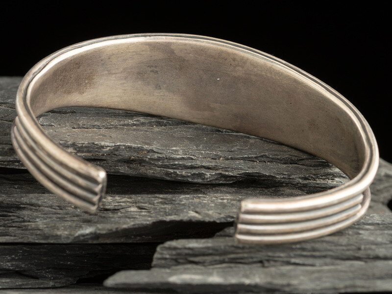 cuff width 7/8 inch, interior circumference 7-1/8 inches + gap length 1-1/8 inches, weight 38.2 dwt.