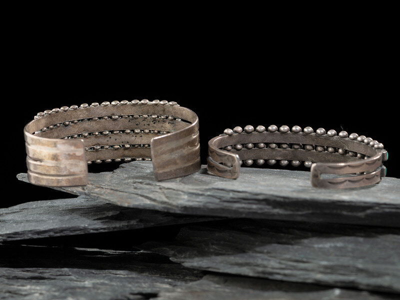 Zuni or Navajo Silver and Turquoise Cluster Cuff Bracelets