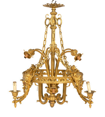 A Belle Epoque Style Gilt Bronze Twelve-Light Chandelier