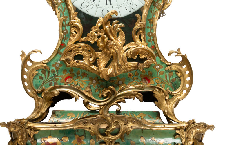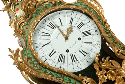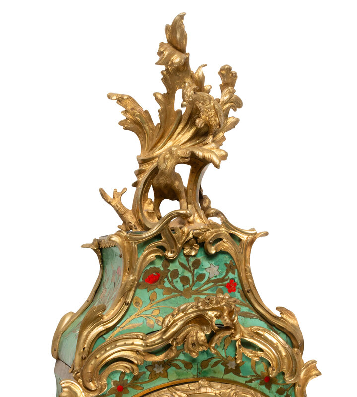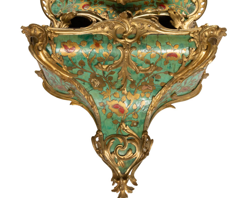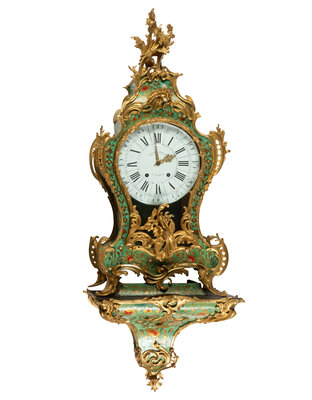 A Louis XV Green-Stained Horn and Gilt Bronze Mounted Cartel Clock and Bracket