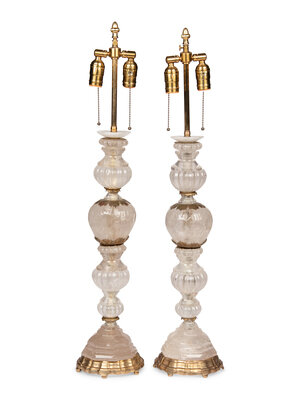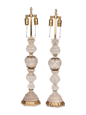 A Pair of Gilt Metal Mounted Rock Crystal Table Lamps