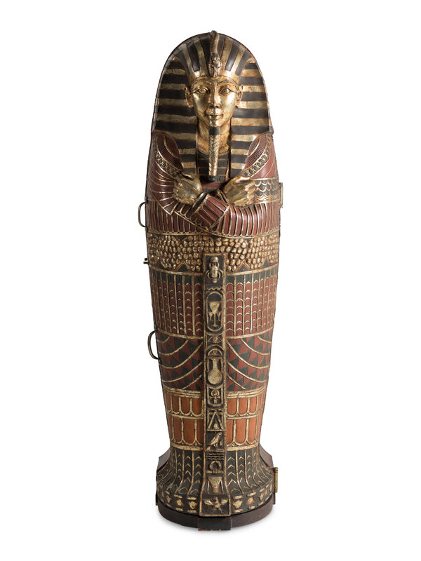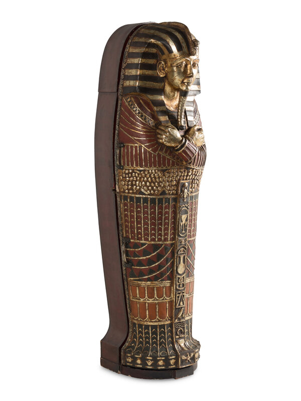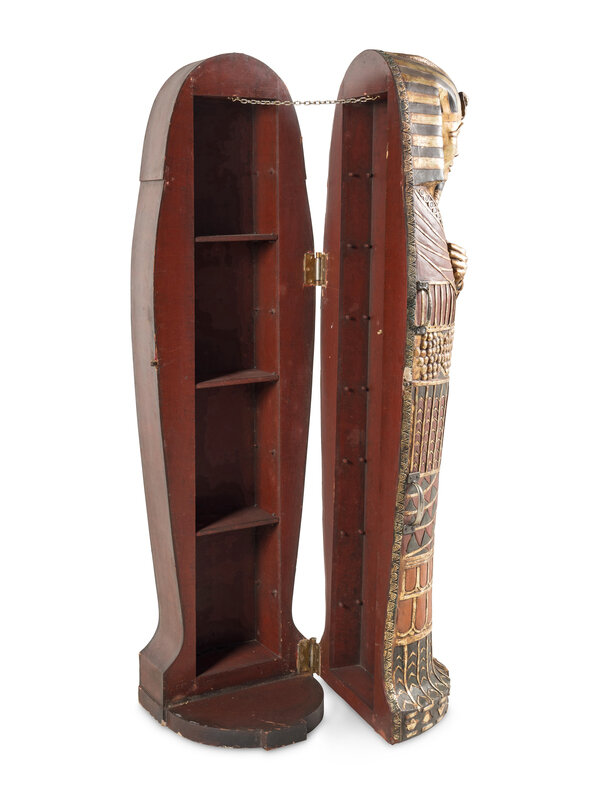 A Continental Carved and Painted Wood Sarcophagus-Form Bar Cabinet