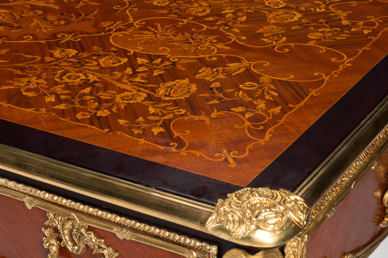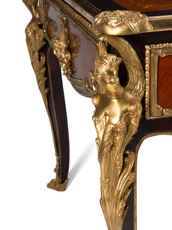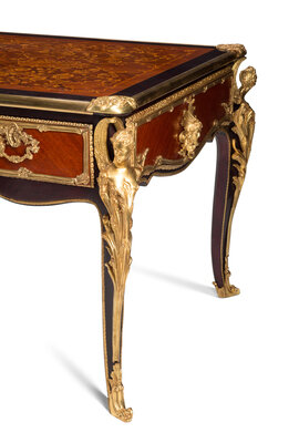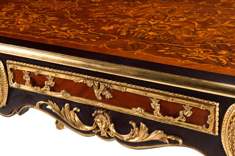 A Louis XV Style Gilt Bronze Mounted Marquetry Bureau Plat