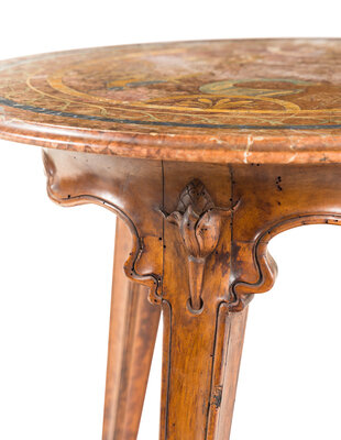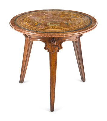 An Italian Baroque Carved Fruitwood Scagliola-Inset Center Table