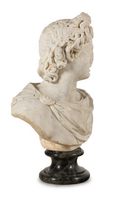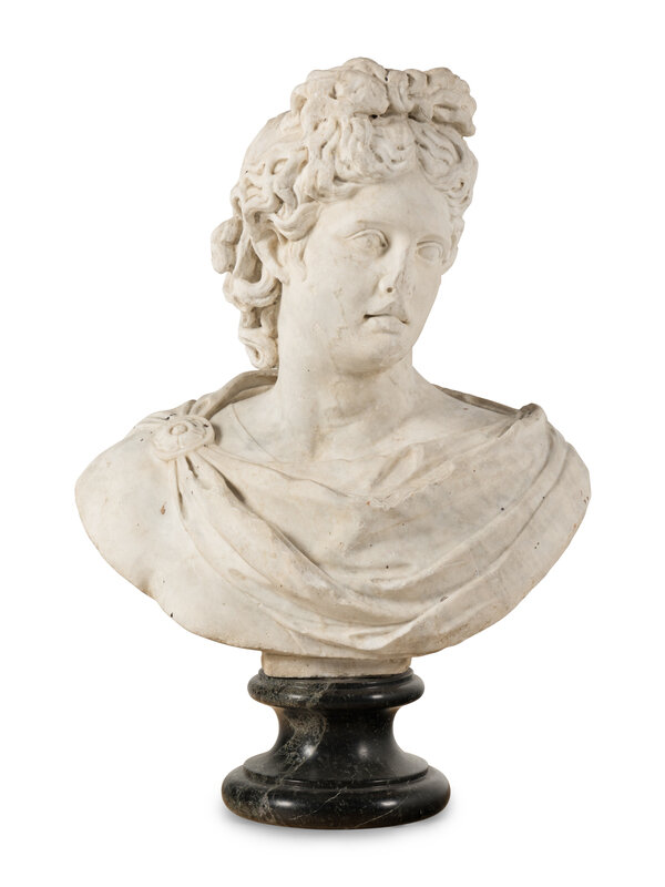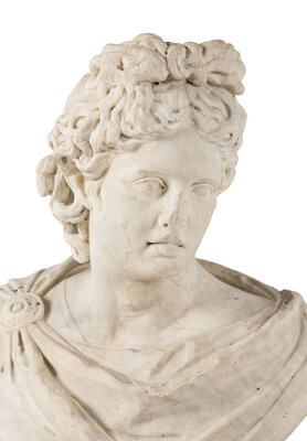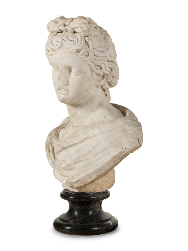 A Continental Carved Marble Bust of the Apollo Belvedere
