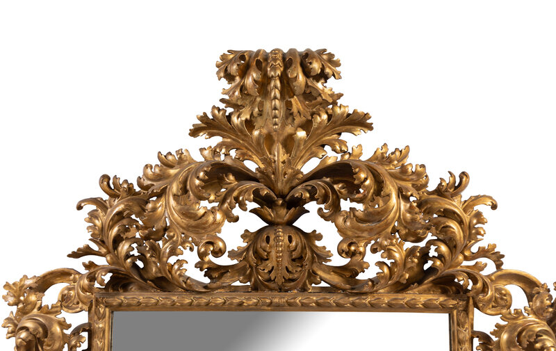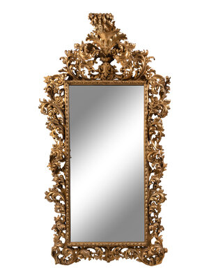 A Large Italian Baroque Style Carved Giltwood Mirror