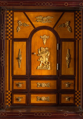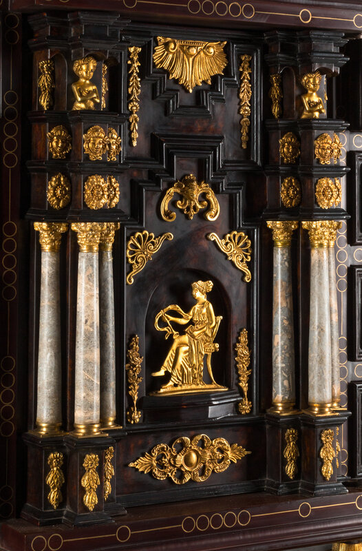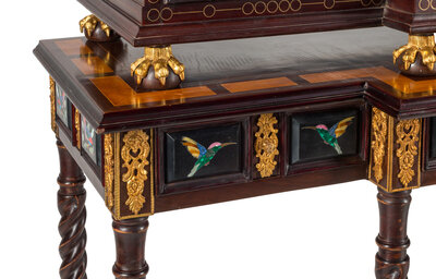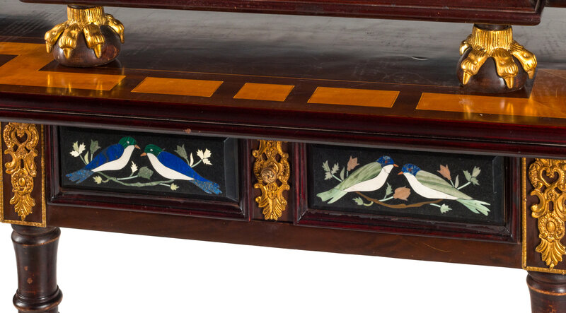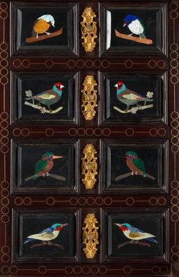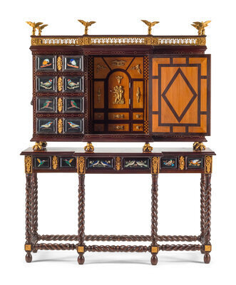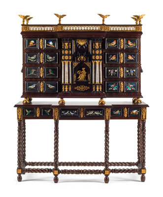 An Italian Gilt Bronze Mounted and Pietra Dura Inset Walnut Collector's Cabinet on Stand