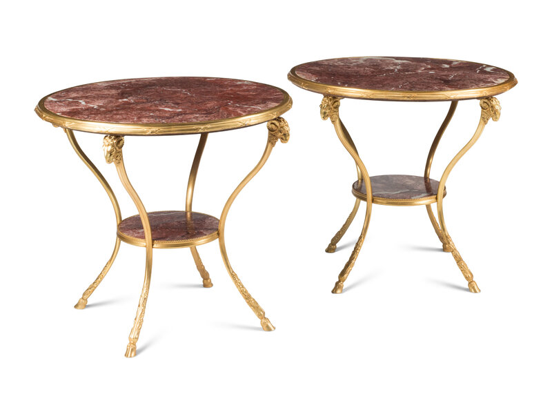 A Pair of Louis XV Style Gilt Bronze and Marble Guéridons