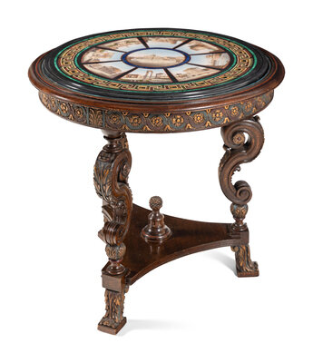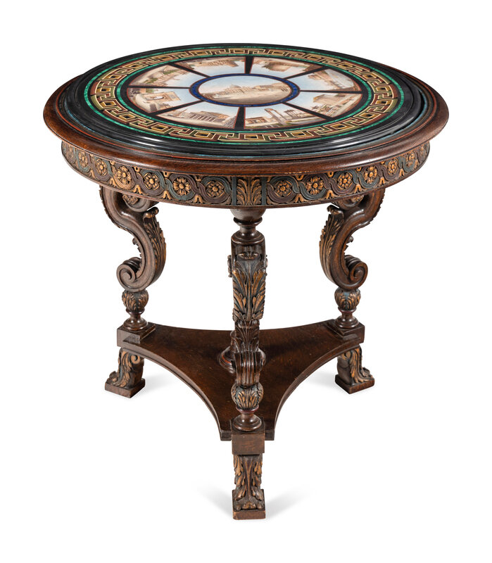 An Italian Micromosaic and Parcel Gilt Oak Center Table