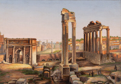 An Italian Micromosaic Panel of the Temple of Vespasian and Titus