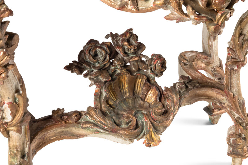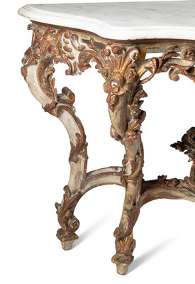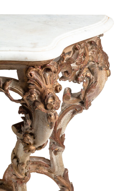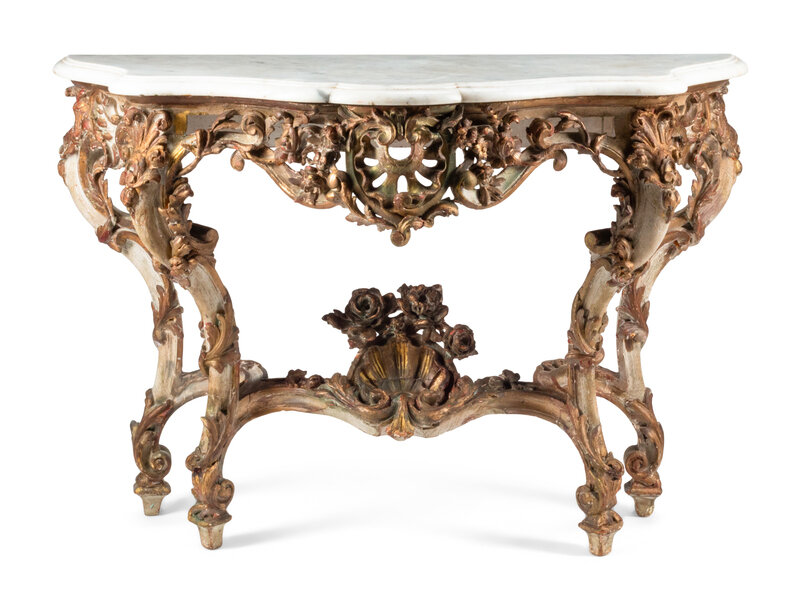 A Louis XV Painted and Parcel Gilt Marble-Top Console Table