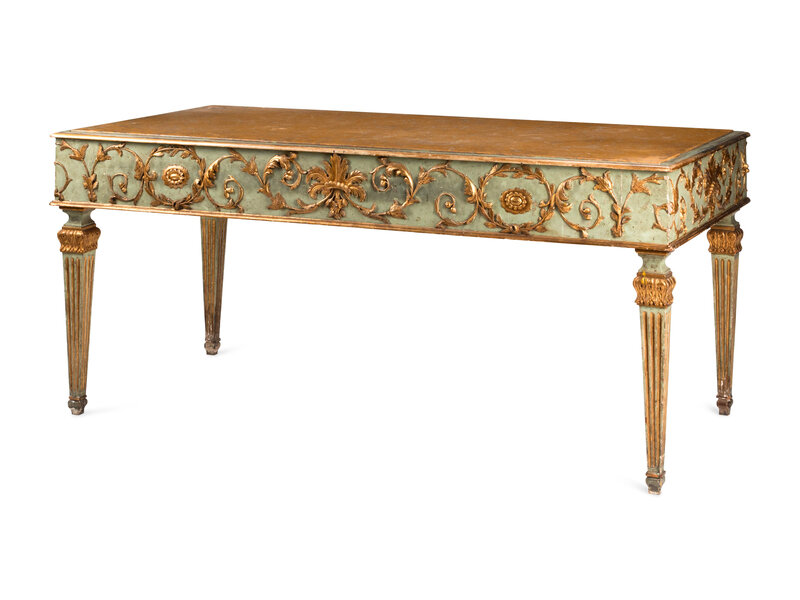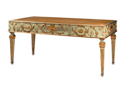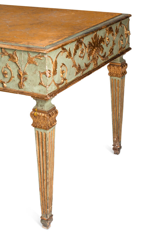An Italian Neoclassical Painted and Parcel Gilt Marble-Inset Center Table