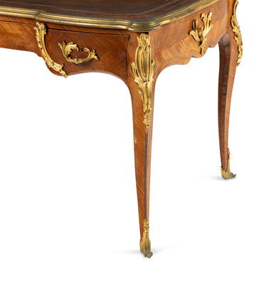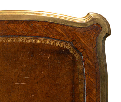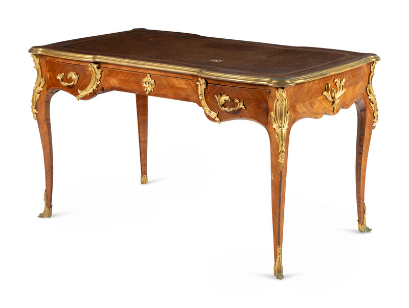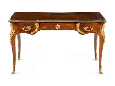 A Louis XV Style Gilt Bronze Mounted Parquetry Bureau Plat
