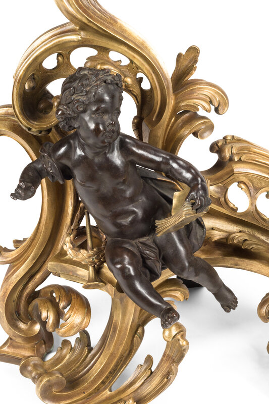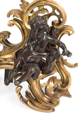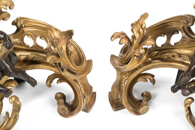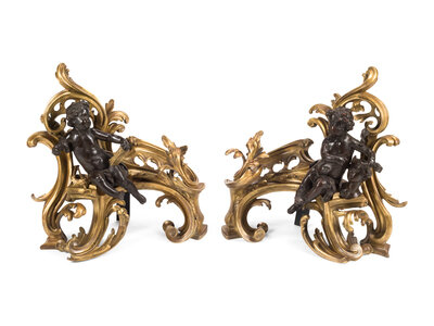 A Pair of Louis XV Style Gilt and Patinated Bronze Figural Chenets